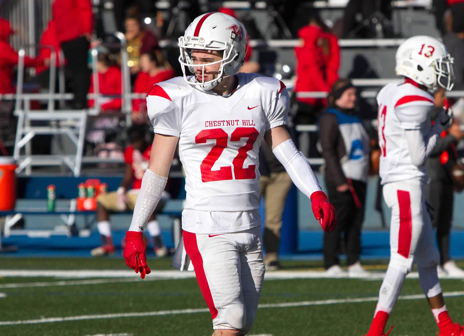 My favorite DB to watch on film Bush brings a passion to the game that you have to admire. Has good height and speed but his length is elite. Bush also does something for Chestnut Hill that most other teams don’t do with their best corner, Bush will often shadow the other team’s best  Receiver. It takes a certain level of skill and confidence to do this but Bush makes it look easy. His lack of numbers is deceiving because when you watch the tape he often runs the route with the receiver so well that the pass will fly by over head or out of bounds. He does need to become more consistent, lesser receivers can get the better of him sometimes because he may not see them as being on his level. When Bush is locked he’s a nightmare for opposing receivers. Chestnut Hill has duo in him and Moser, if they can maximize their talents Offensive Coordinators wont be getting much sleep.