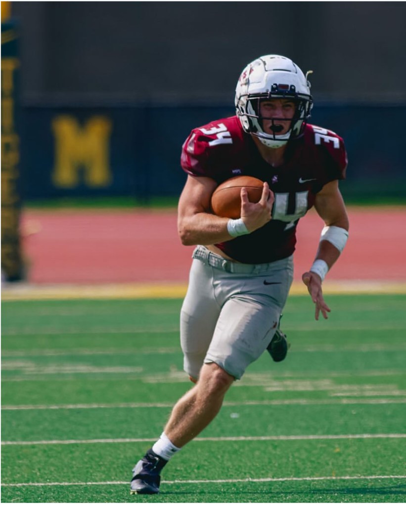 Reid has been an absolute monster from the very moment he stepped foot onto the field for Bellarmine. A big bruising back Reid makes his presence felt every time he touches the rock. Barreling through defenders is a common occurrence as Reid turns out yards. Last year the Knights had a more pass focused agenda, however Reid was still impactful when called upon. With a new QB at the helm this year it remains to be seen if the Knights will do more of the same this season. One thing we can count on for sure is if all else fails you know #34 will get the rock. Reid will go down as one of the best running backs sprint football has ever seen with another strong season.